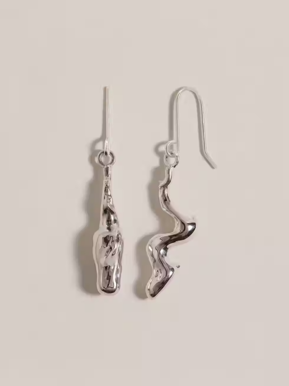 Earrings inspired by the imagined journey of wooden branches drifting across the vast sea. Their forms are gently shaped by both harsh and tender tides, as if the ocean itself were the sculptor. Given enough time, even the wildest waves soften wood into something quietly beautiful.