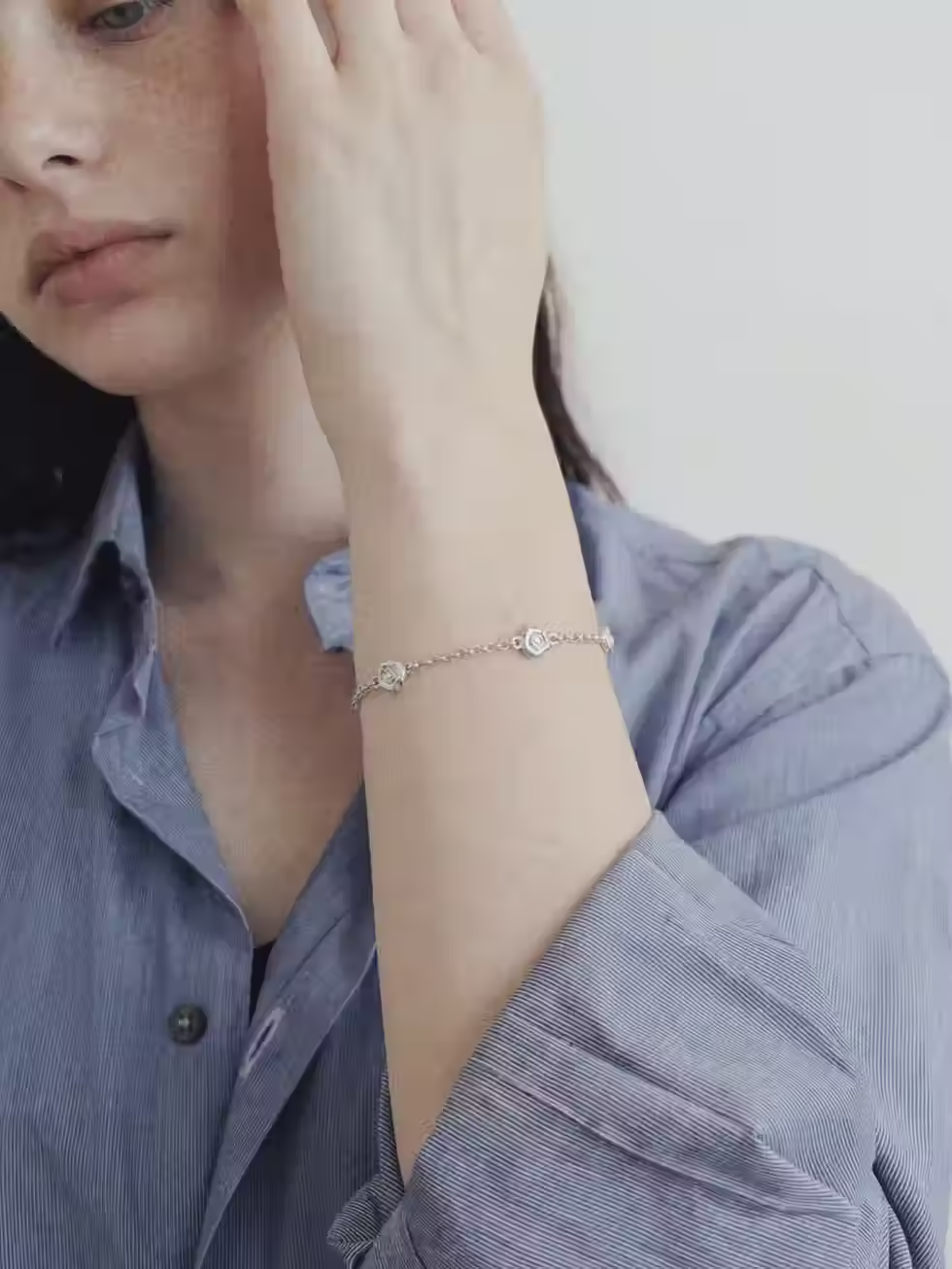 Bracelet inspired by the subtle lift flowers bring to everyday life. Its form blooms at the wrist, gently recalling the beauty found in ordinary moments with every natural gesture. Crafted in sterling silver in Japan.