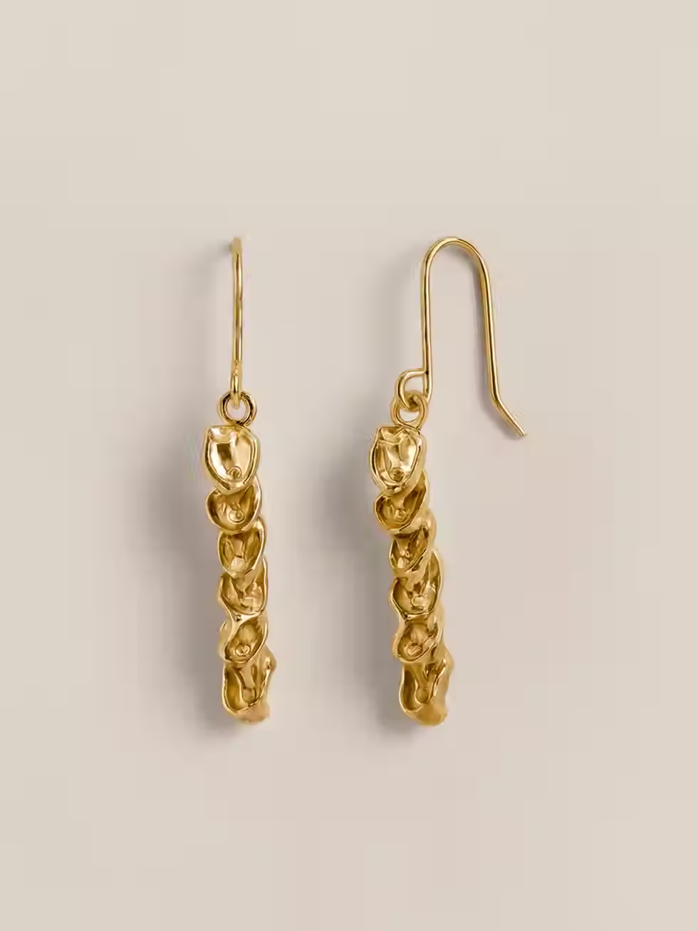 Earring inspired by a tulip formed from a sequence of tied ribbons. Each bloom stands on its own, while the act of binding draws them into a gentle, continuous flow. Crafted in sterling silver in Japan.