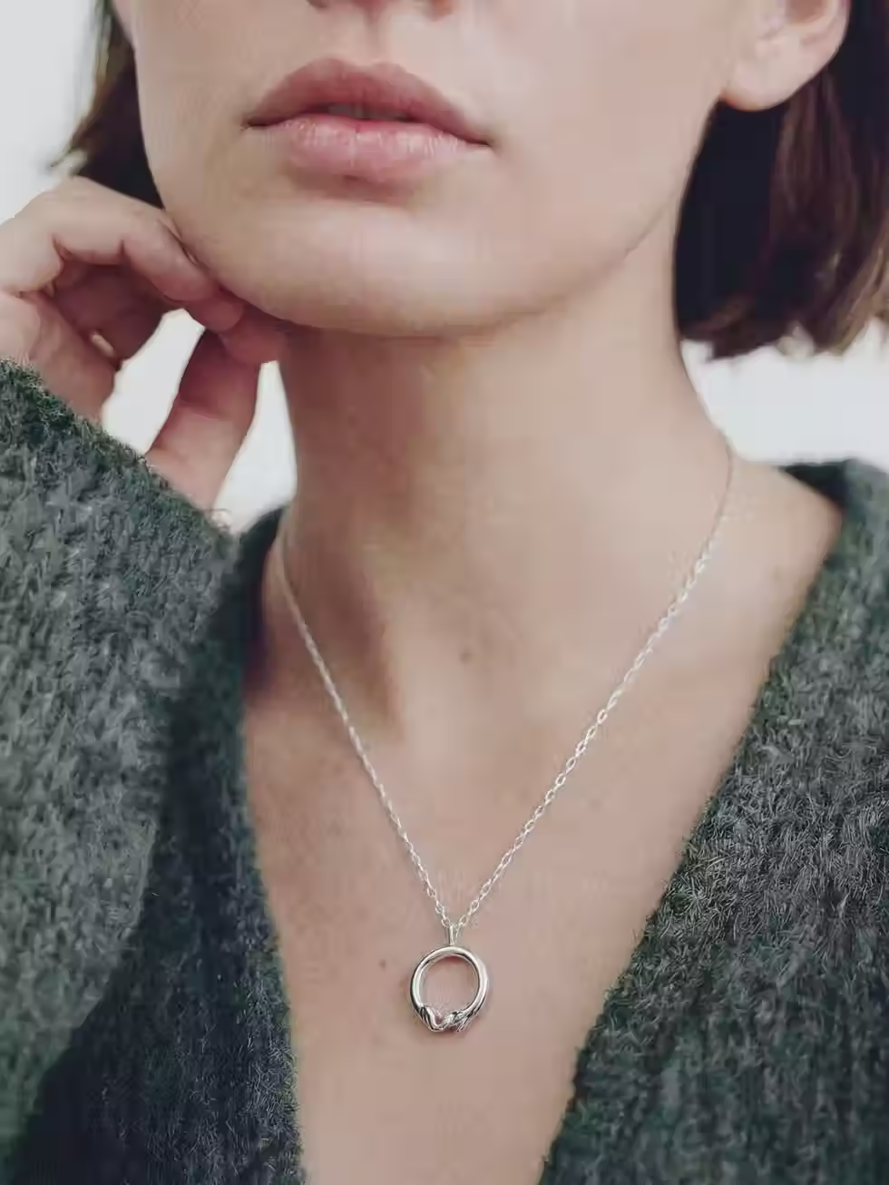 Necklace inspired by boundless energy and innocent playfulness. Drawn from the dachshund’s instinctive impulse, reimagined as a continuous, flowing sequence. Crafted in sterling silver in Japan.