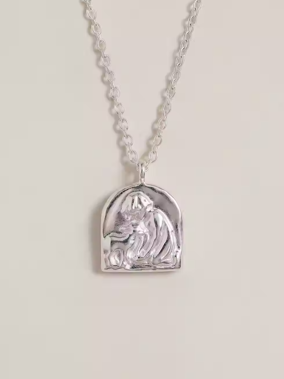 Necklace inspired by the quality of time shaped through communication beyond language. A beautiful relationship defined by mutual trust in one another’s presence. Crafted in sterling silver in Japan.