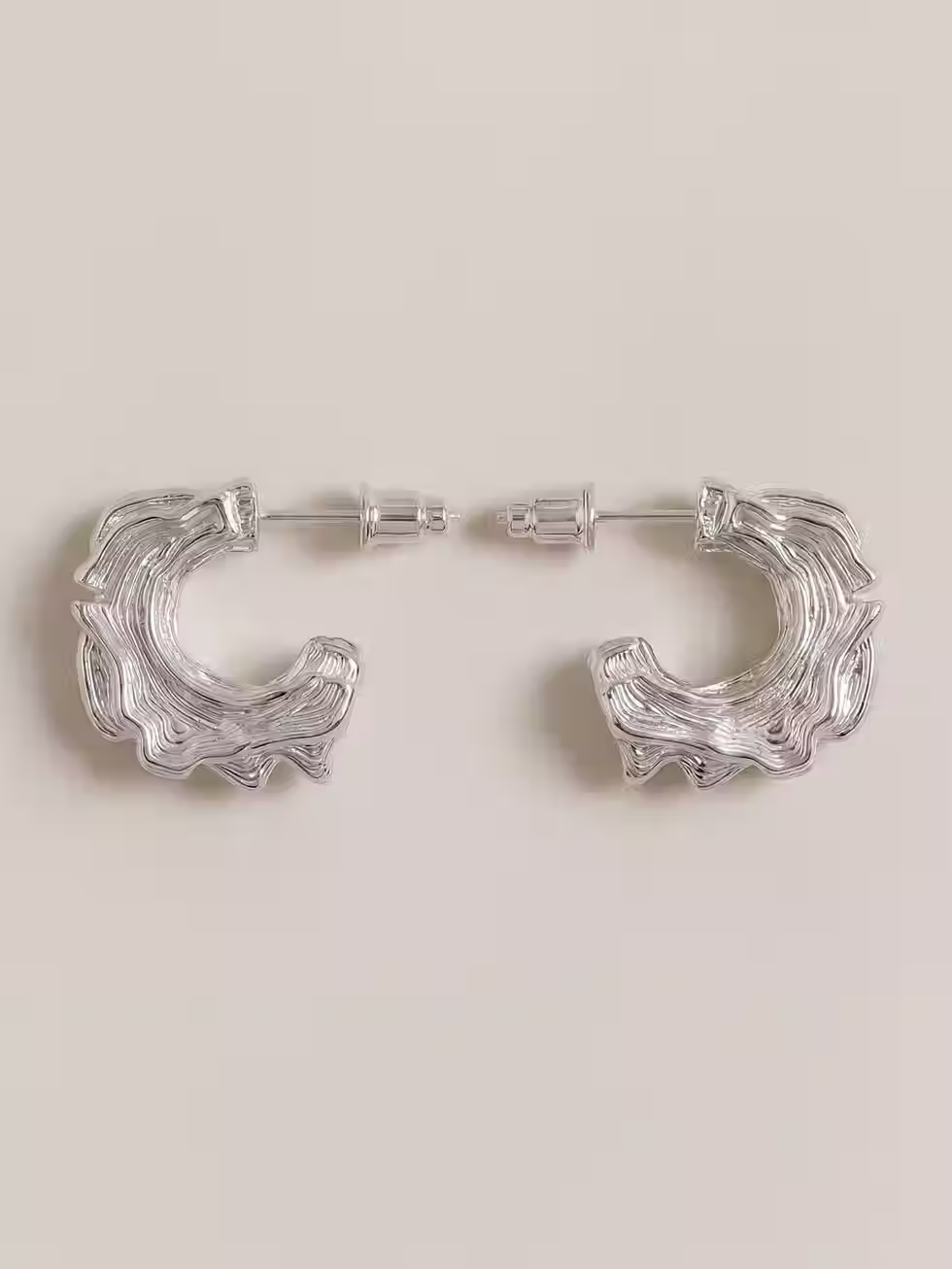 Earring inspired by the beauty of coincidence. Two timelines, each shaped at a different pace, overlap to create a single sense of depth. Crafted in sterling silver in Japan.